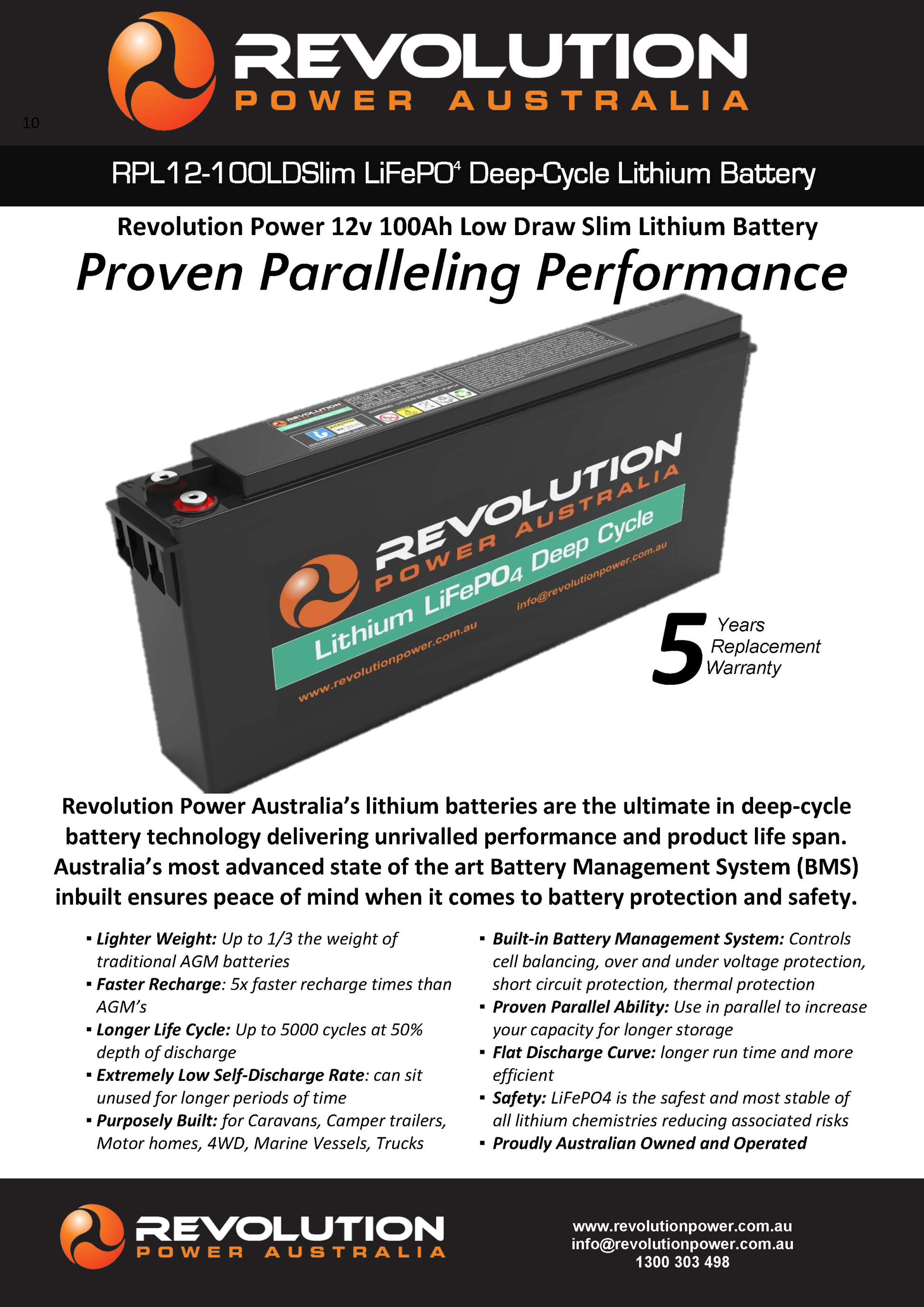 Revolution Power Australia’s lithium batteries are the ultimate in deep-cycle battery technology delivering unrivalled performance and product life span. Australia’s most advanced state of the art Battery Management System (BMS) inbuilt ensures peace of mind, when it comes to battery protection and safety.